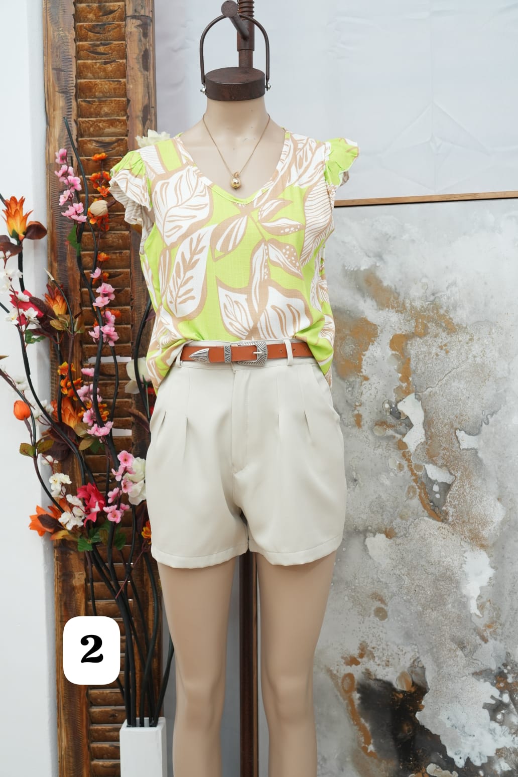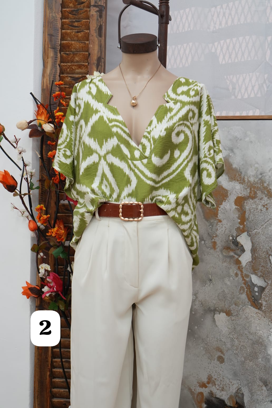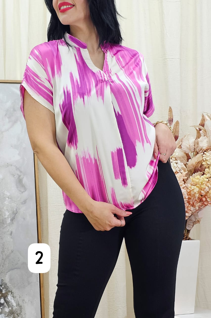 Blusa manga Corta de Satén Estampado Cuello V Mile