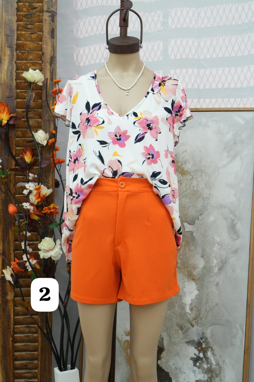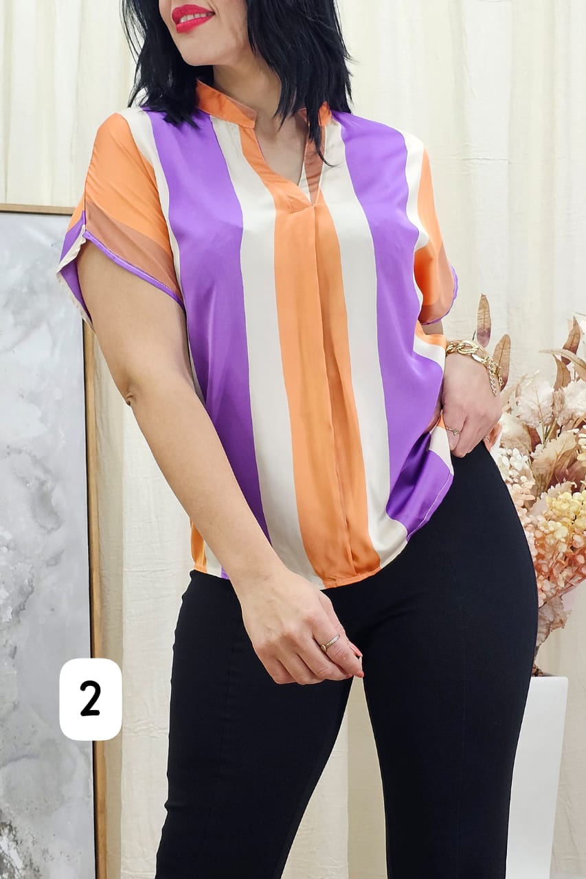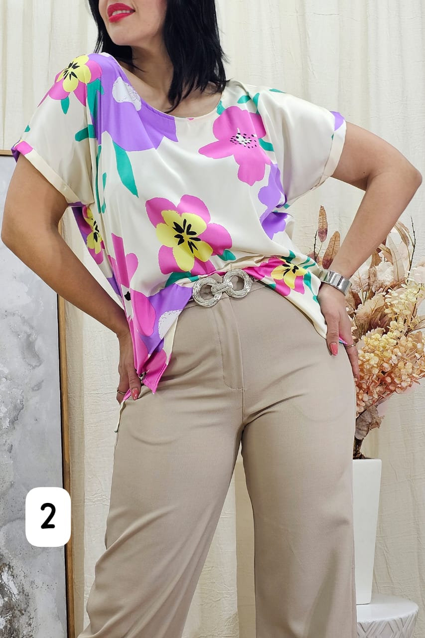 Blusa manga Corta de Satén Estampado Cuello V Mile