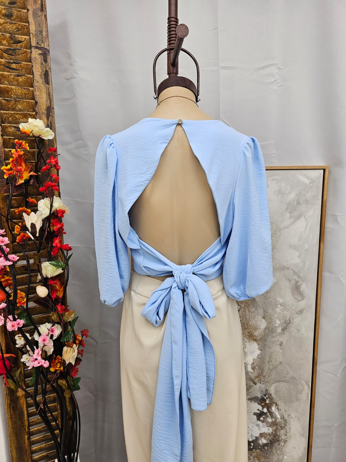 Blusa Tela emilia lisa manga Volados con lazo bri