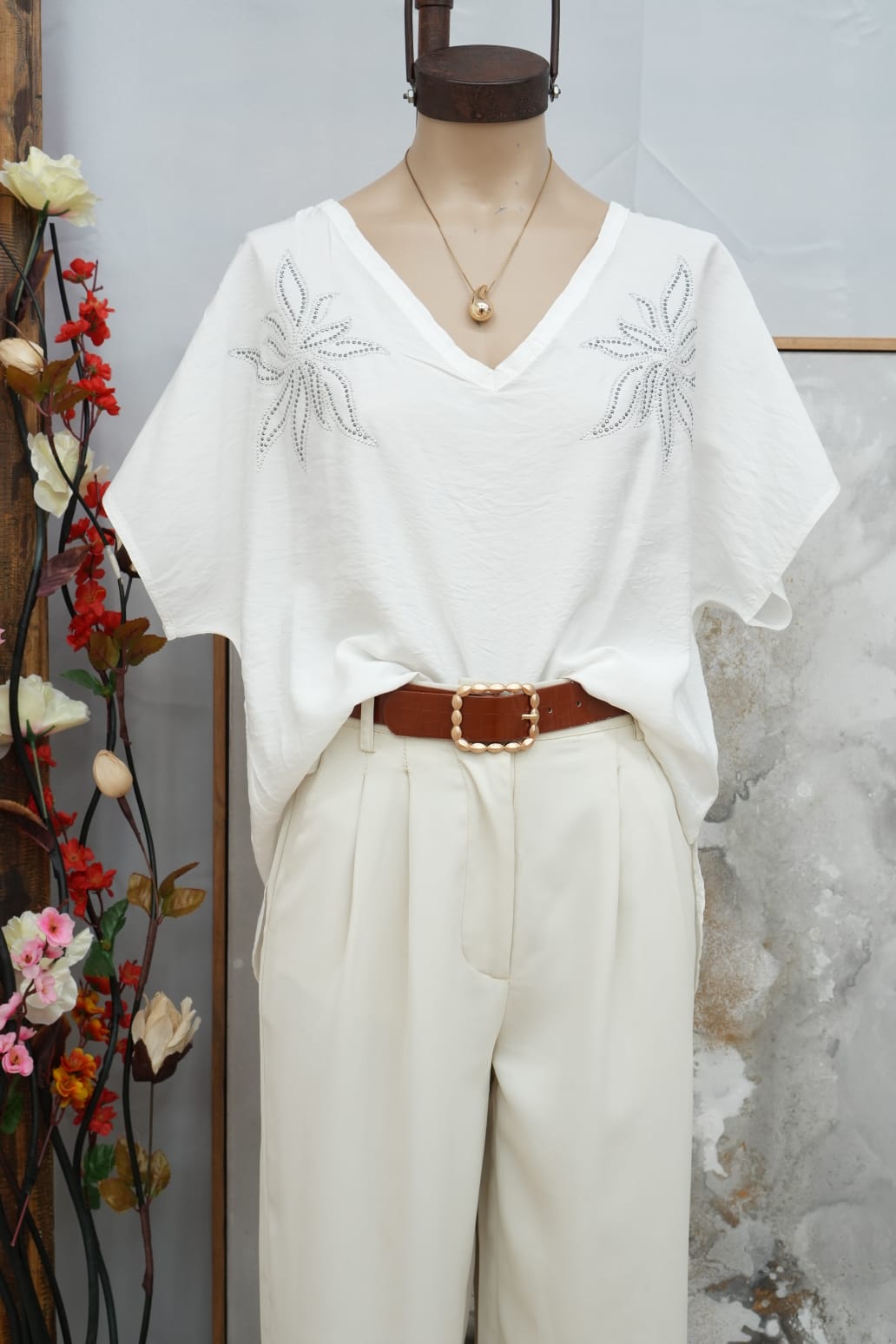 Blusa manga china Emilia con pinza atras ariel y apliques brillos