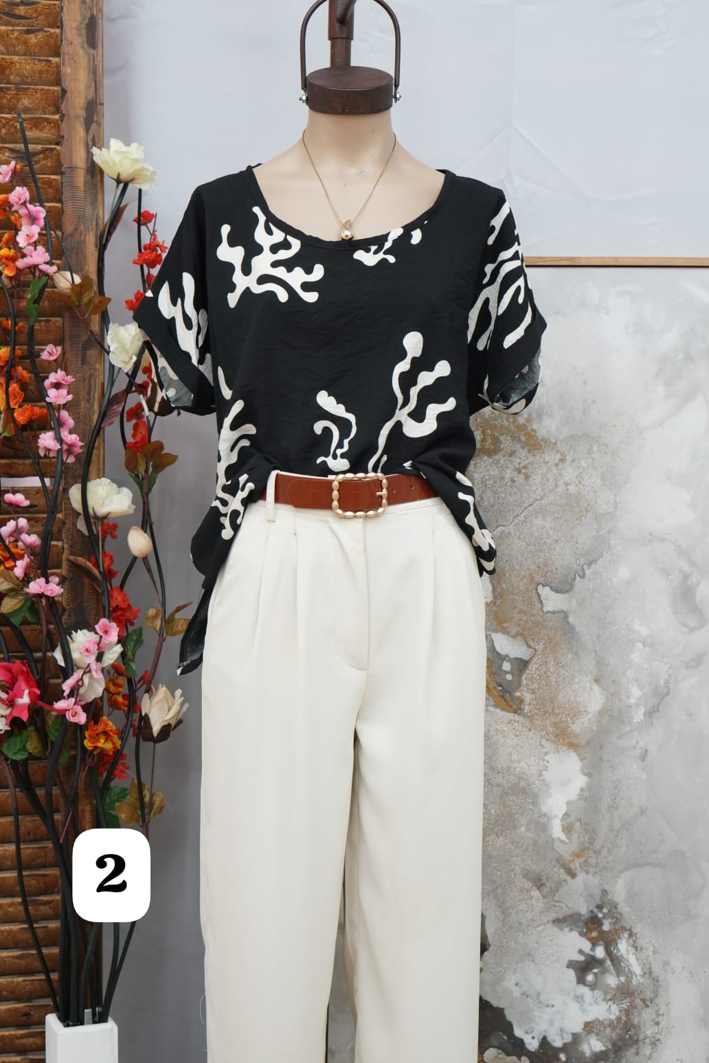 Blusa tela emilia estampada con Dobladillo en la manga y tajo en los costados