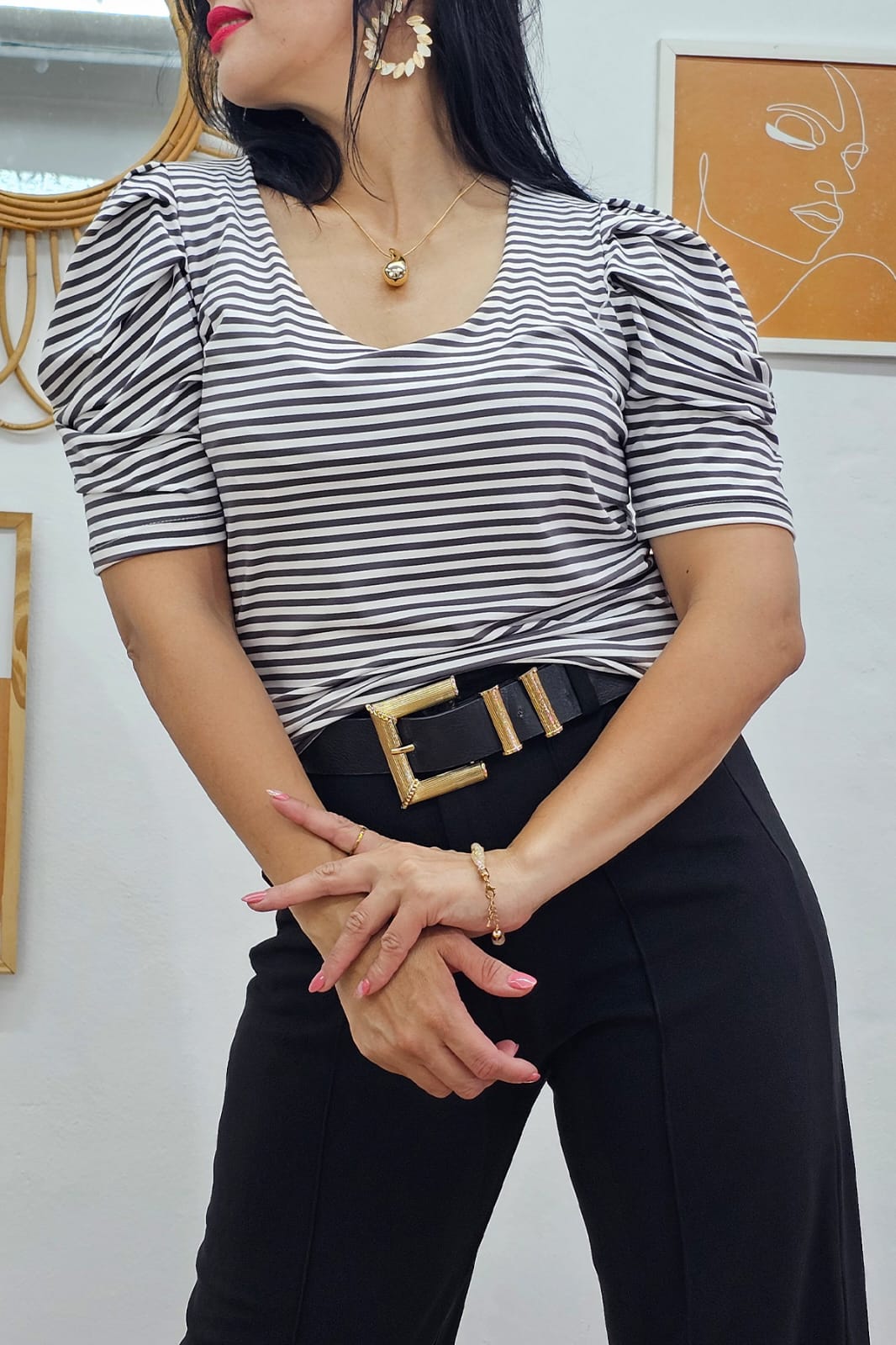 Remera Básica modal rayada Cuello redondo juli