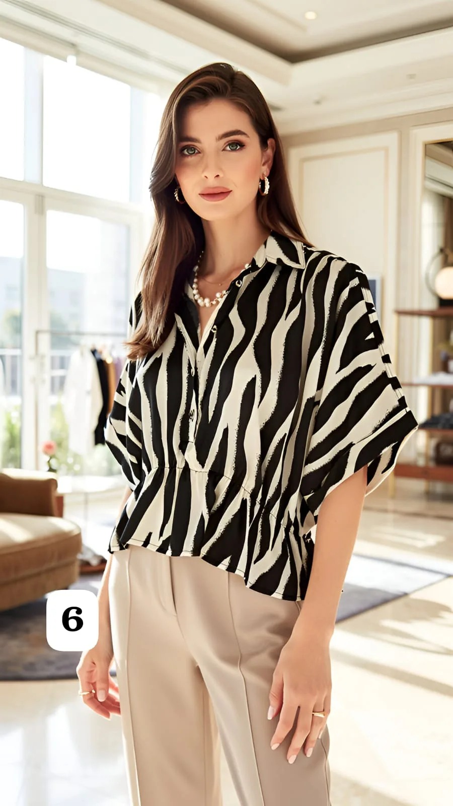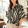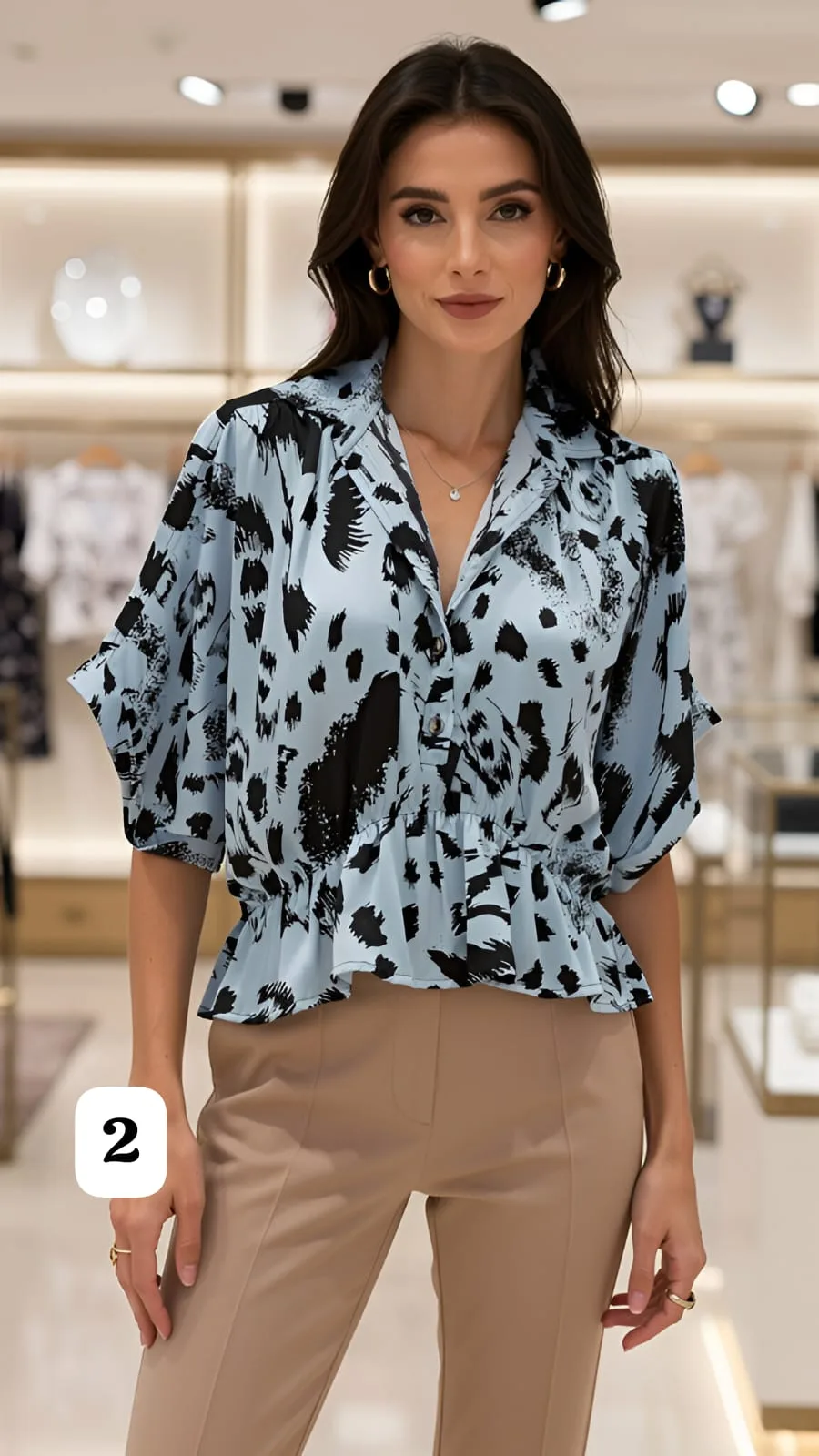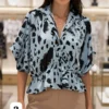 Blusa con cuello manga doblada arrugada abajo de sartén estampada melissa