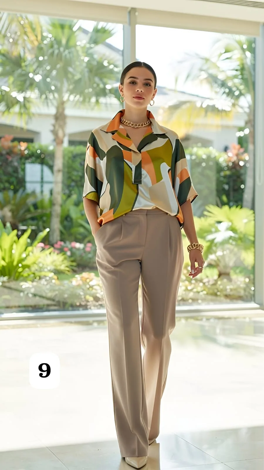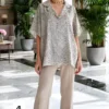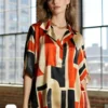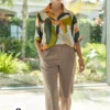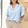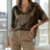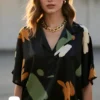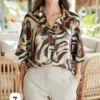 blusa cuello chomba de satén estampado