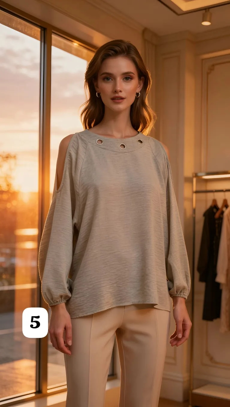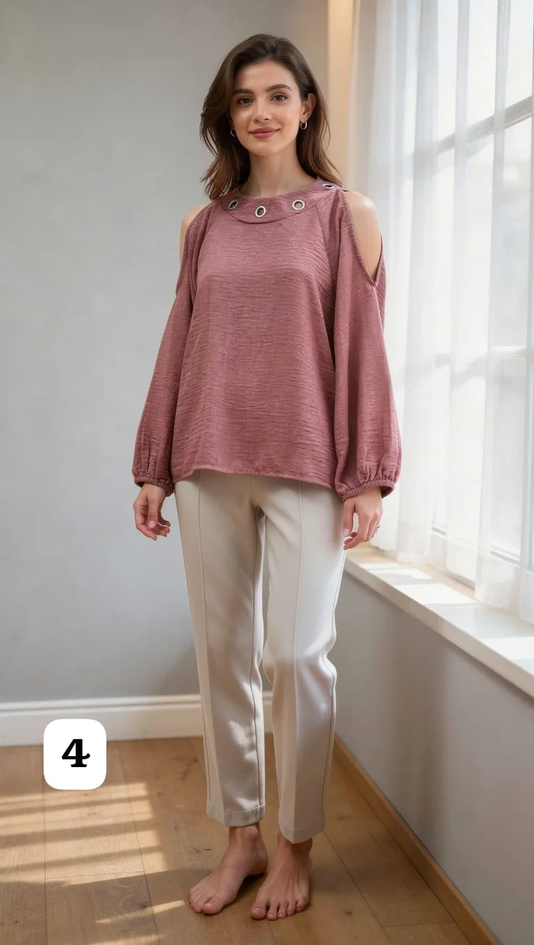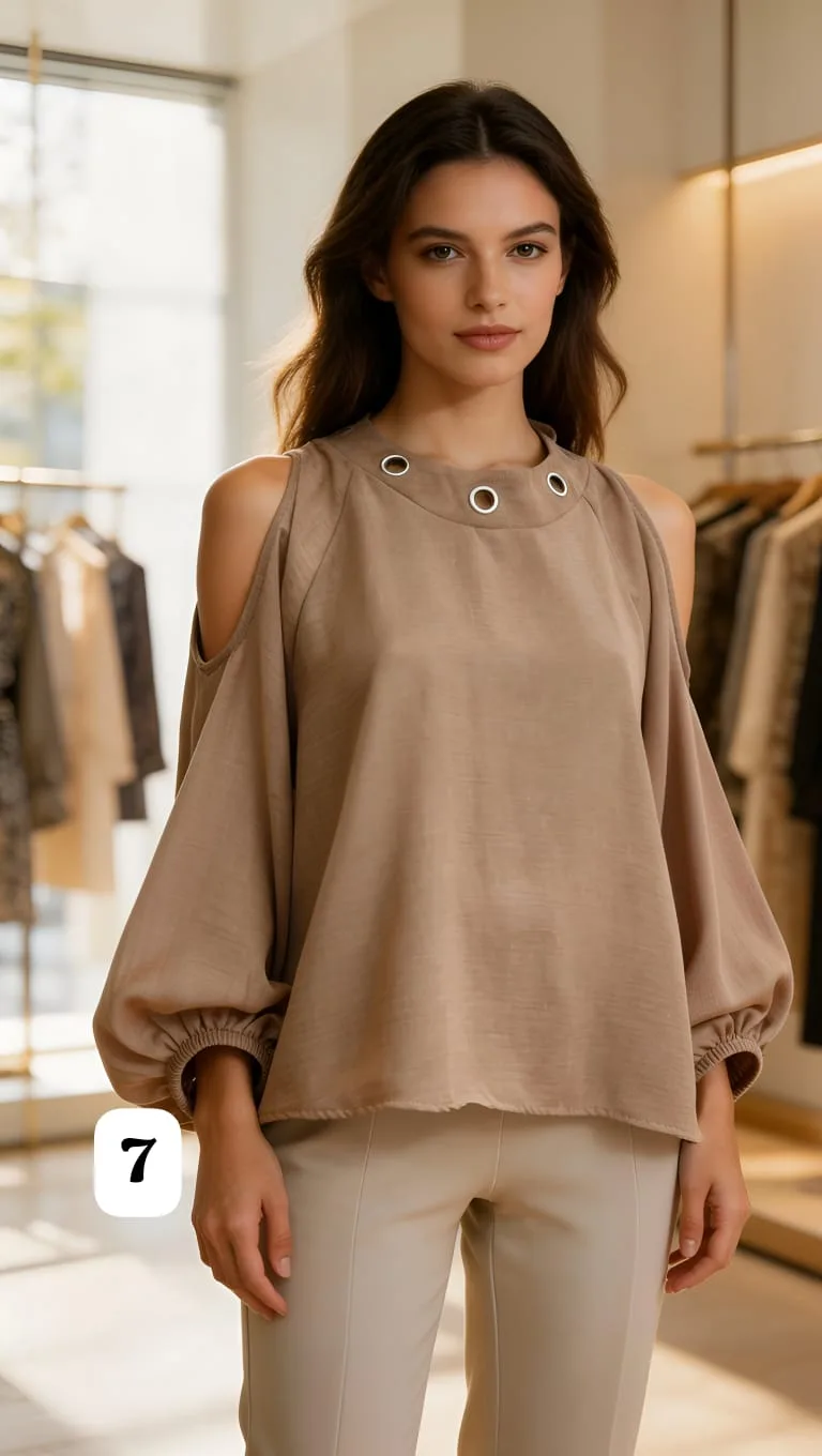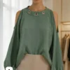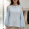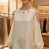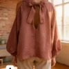 Blusa de Lino cey con arandelas en el cuello lazo atrás y abertura en los hombros Cloe