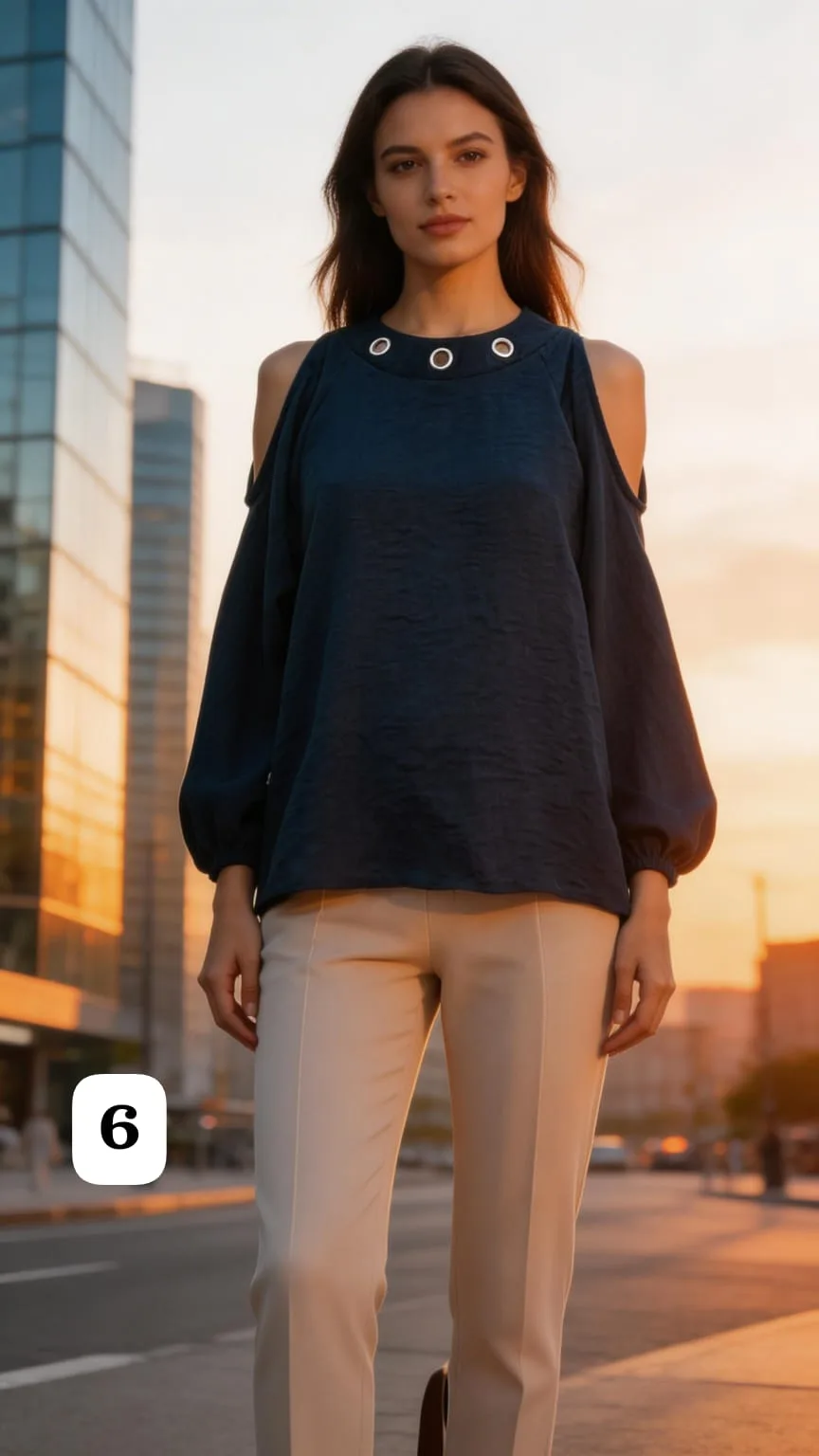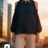 blusa de Lino cey con arandelas en el cuello lazo atrás y abertura en los hombros