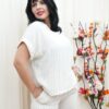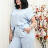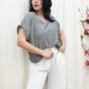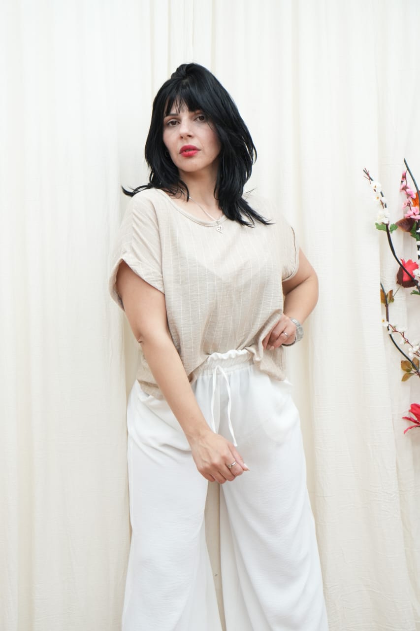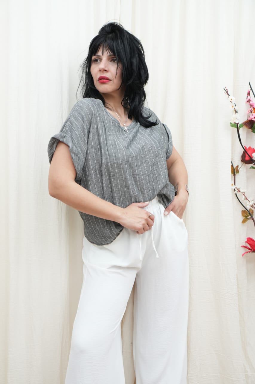 Blusa de lino rayado manga corta con dabladillo en la manga maziel