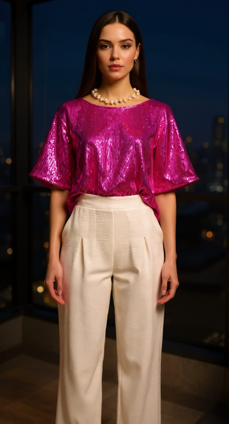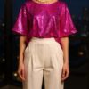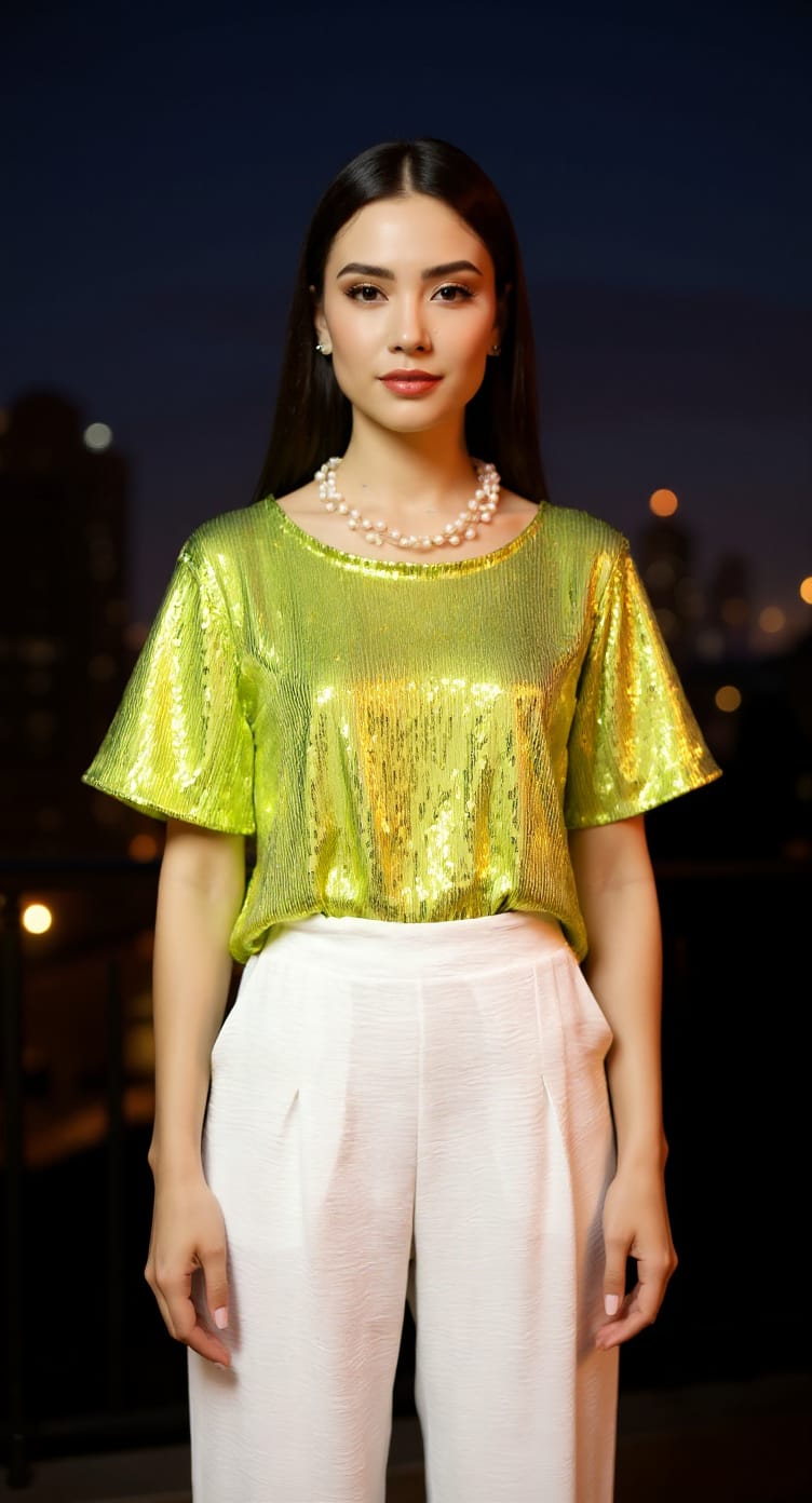 blusa lentejuelas botón atrás