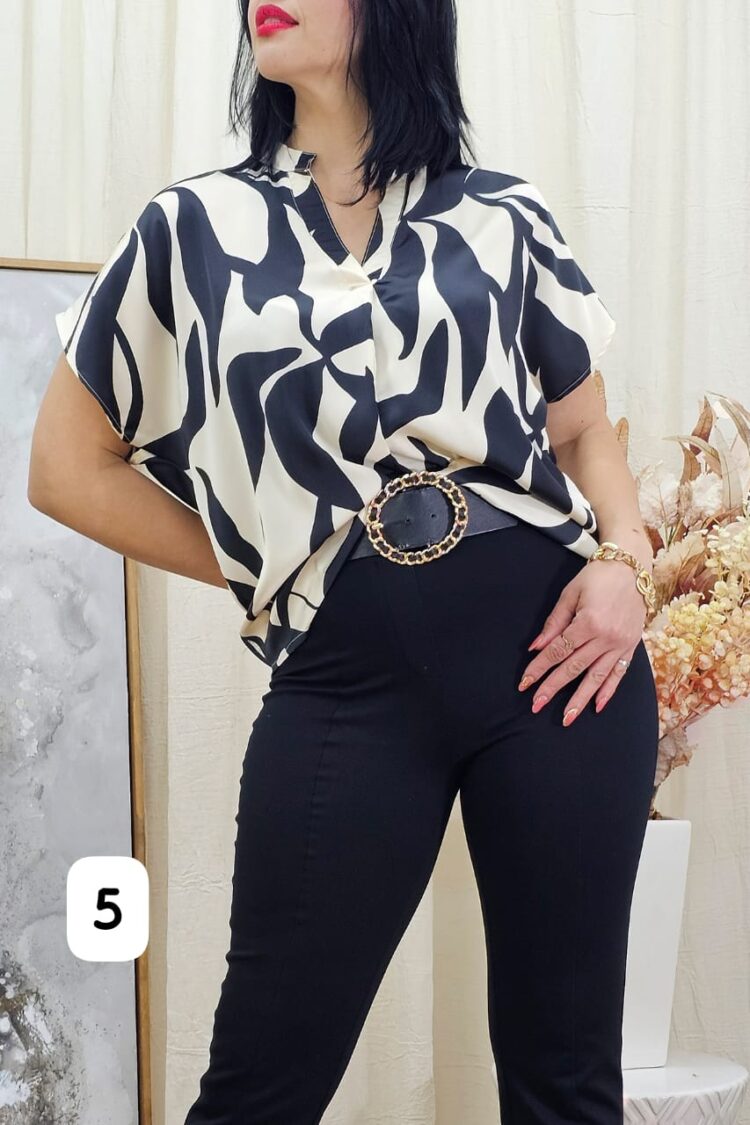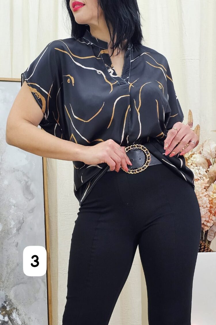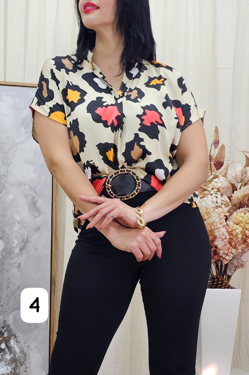 Blusa manga Corta de Satén Estampado Cuello V Mile