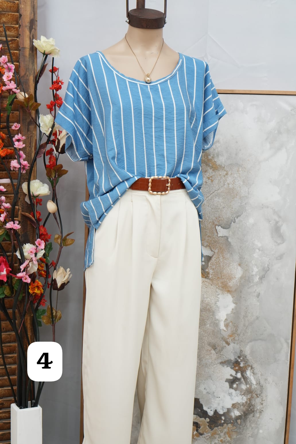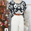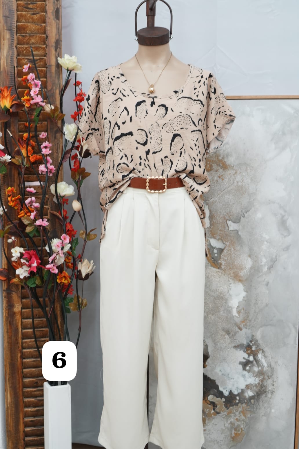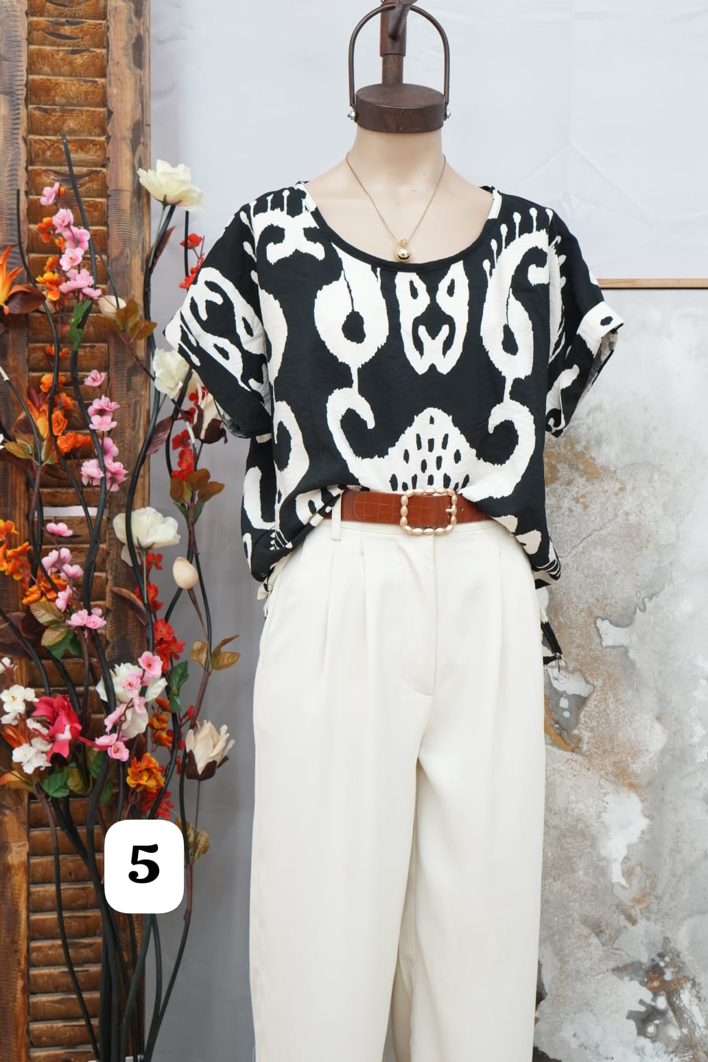 blusa tela emilia estampada con Dobladillo en la manga y tajo en los costados