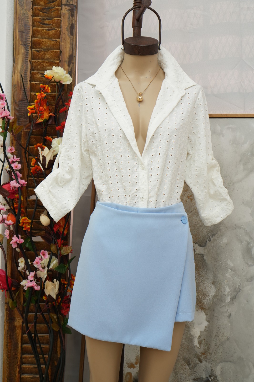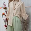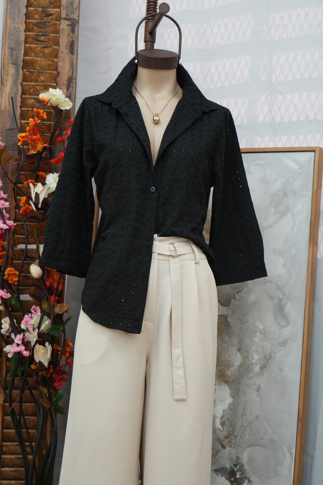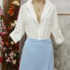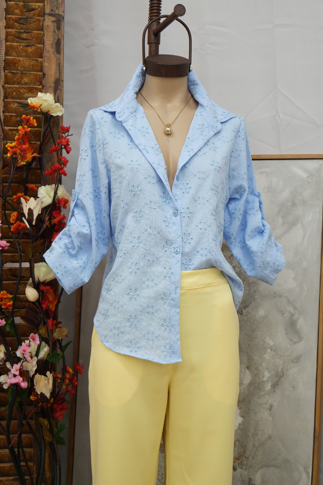 Camisa clasica 3/4 de lino con brodery Yudissa