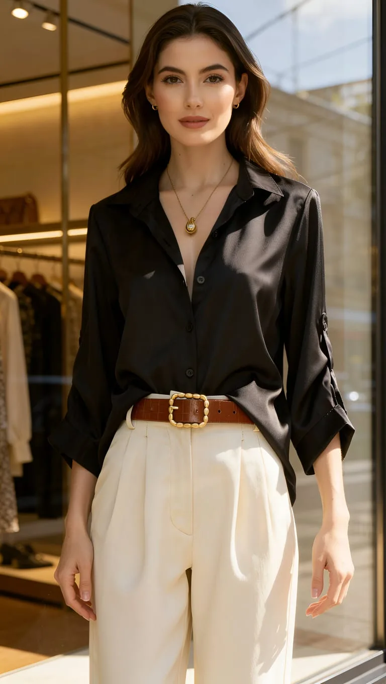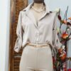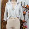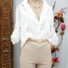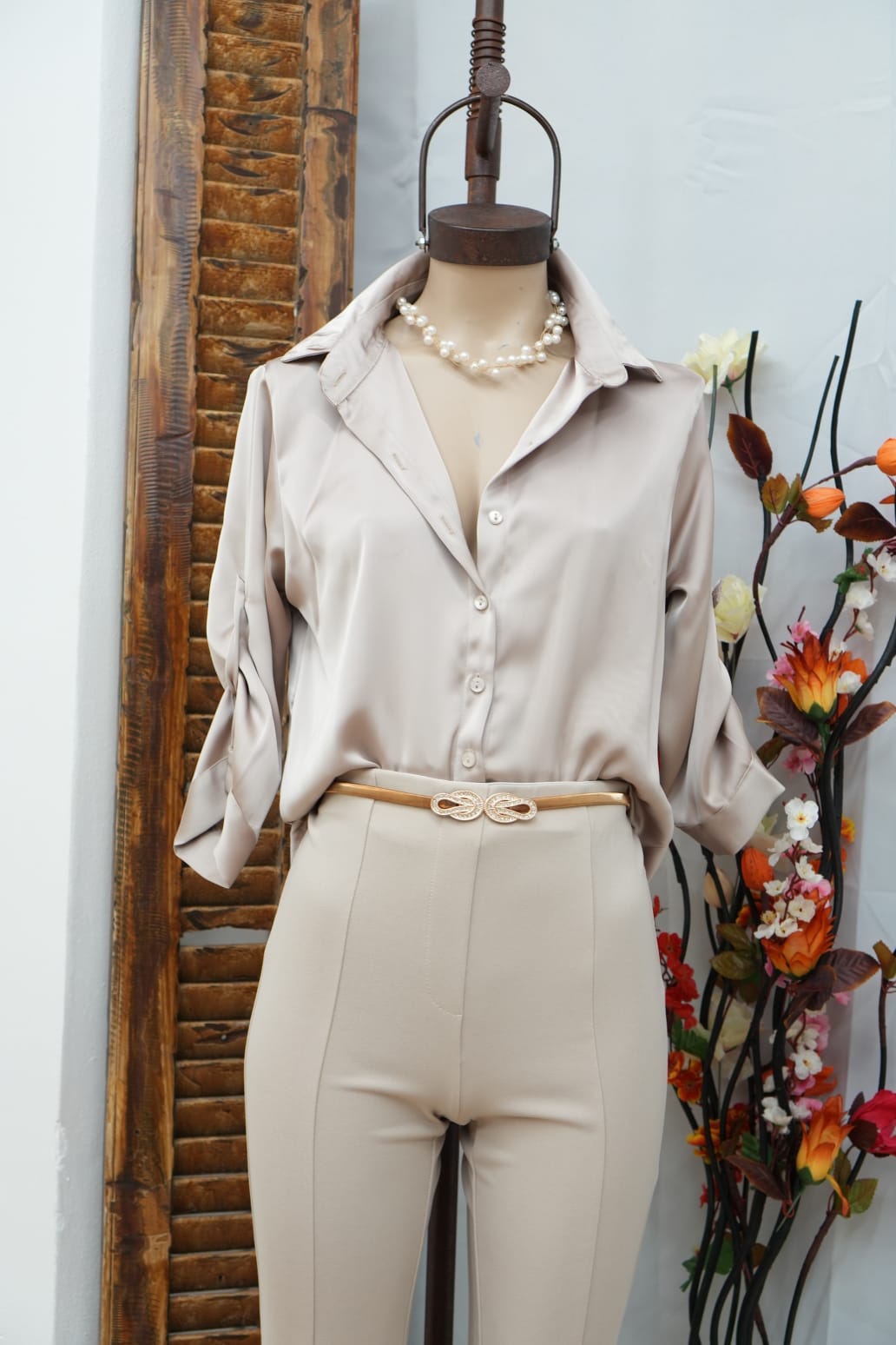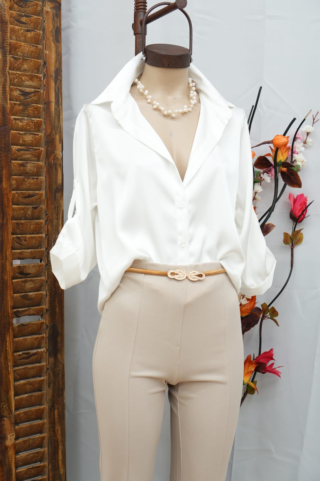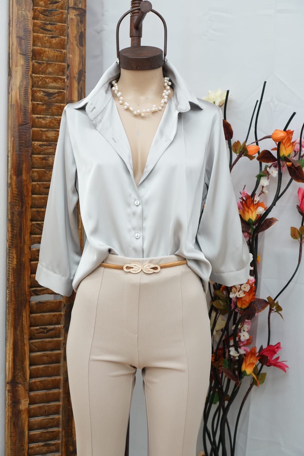 camisa clásica manga 3/4 de satén liso Premium sin bolsillo