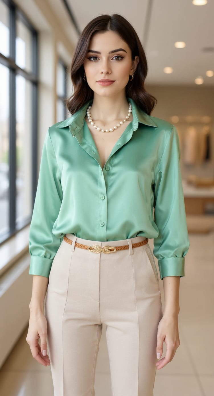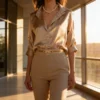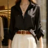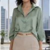 Camisa clásica manga 3/4 de satén liso Premium sin bolsillo