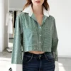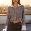 camisa corta combinada tela poplin rallado manga larga
