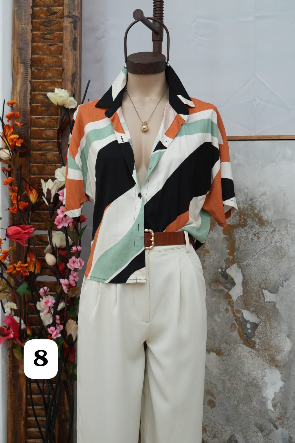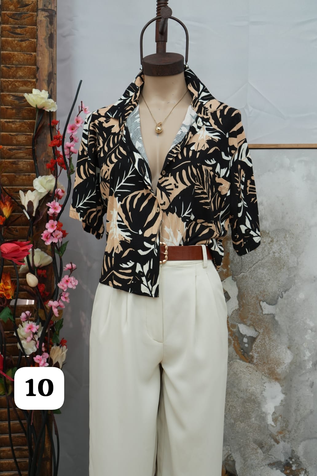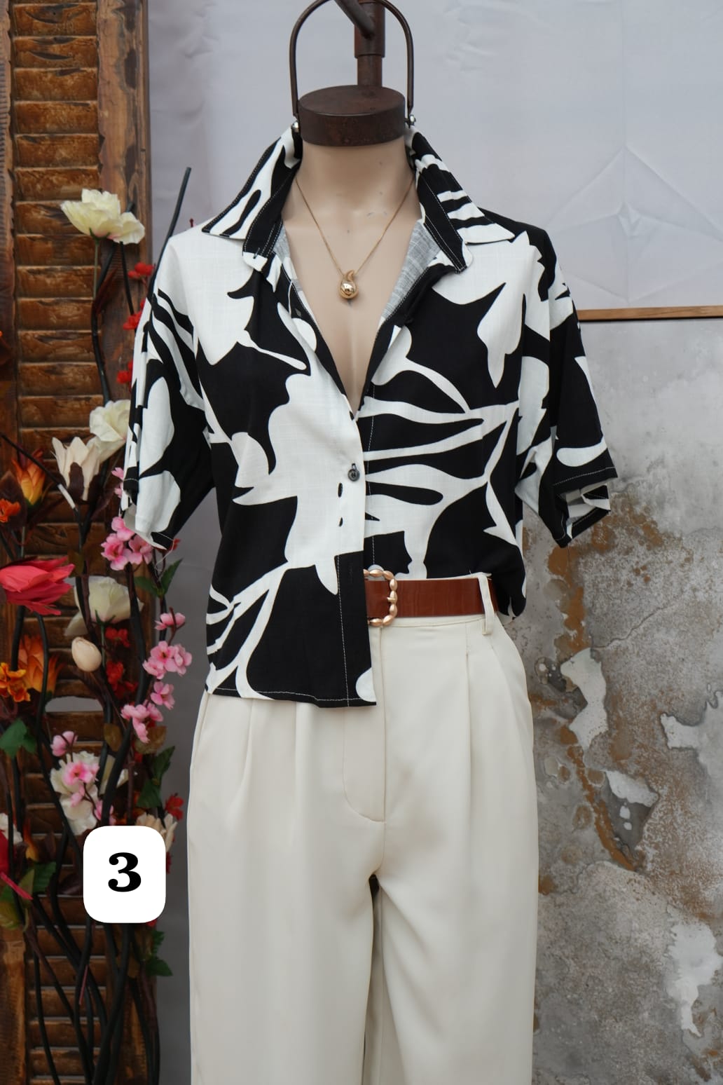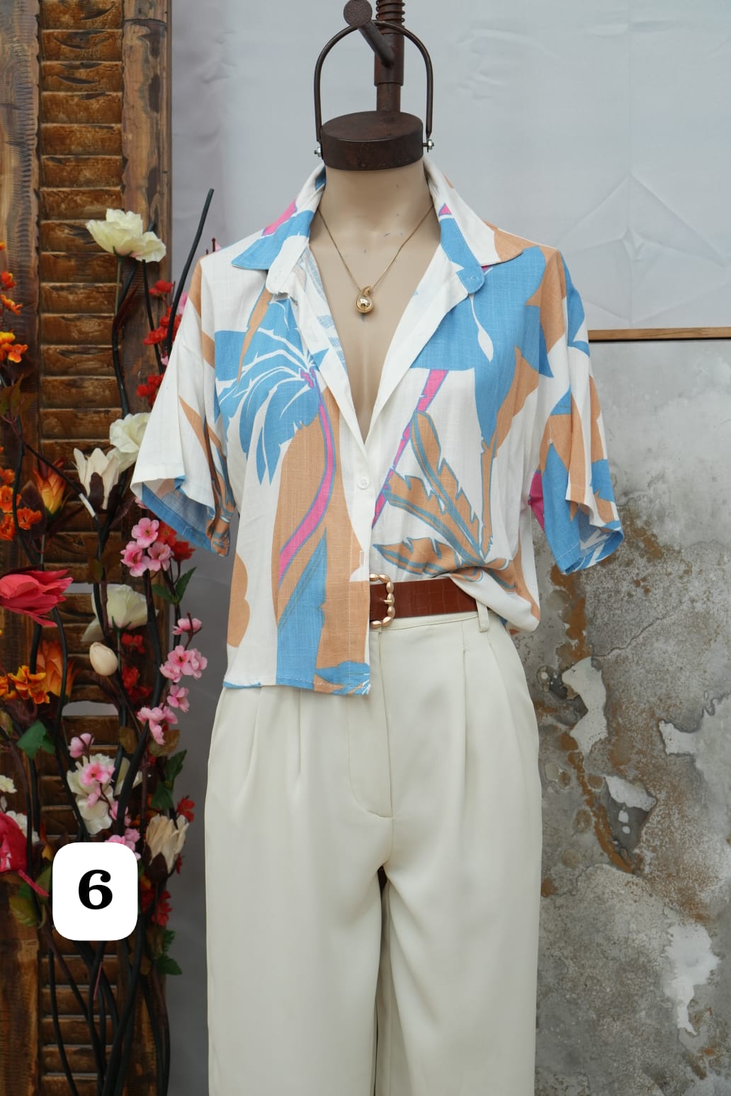Camisa corta hawaiana de lino estampado eri (PARTE 1)