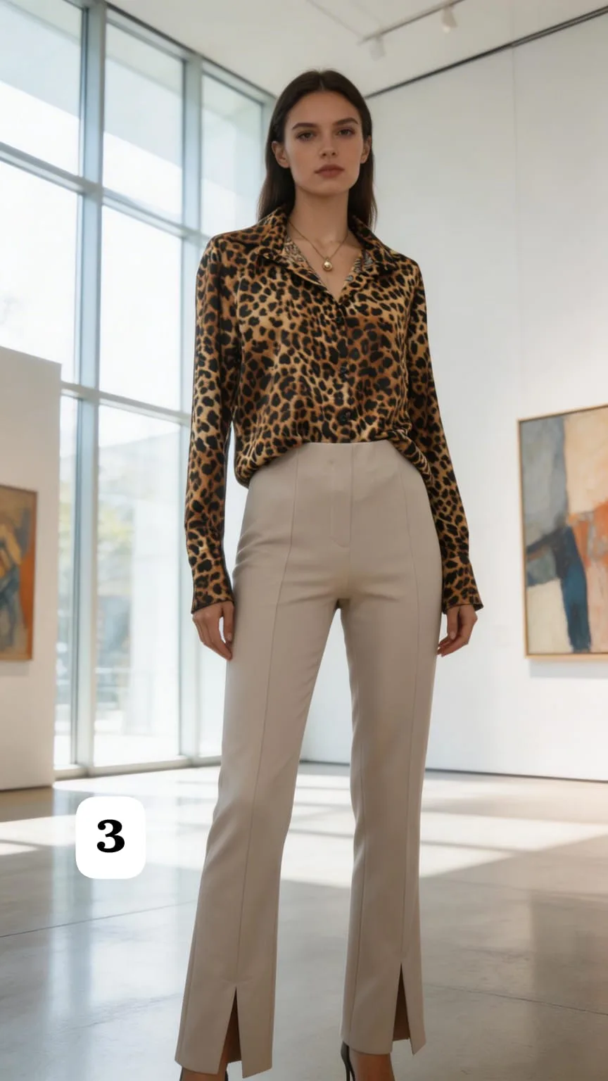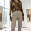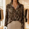 Camisa de saten Premium Animal print manga larga con puño ancho Karly