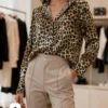 Camisa de saten Premium Animal print manga larga con puño ancho Karly