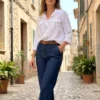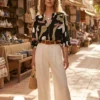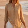 Camisa Lino cuello Mao estampada manga 3/4 vane