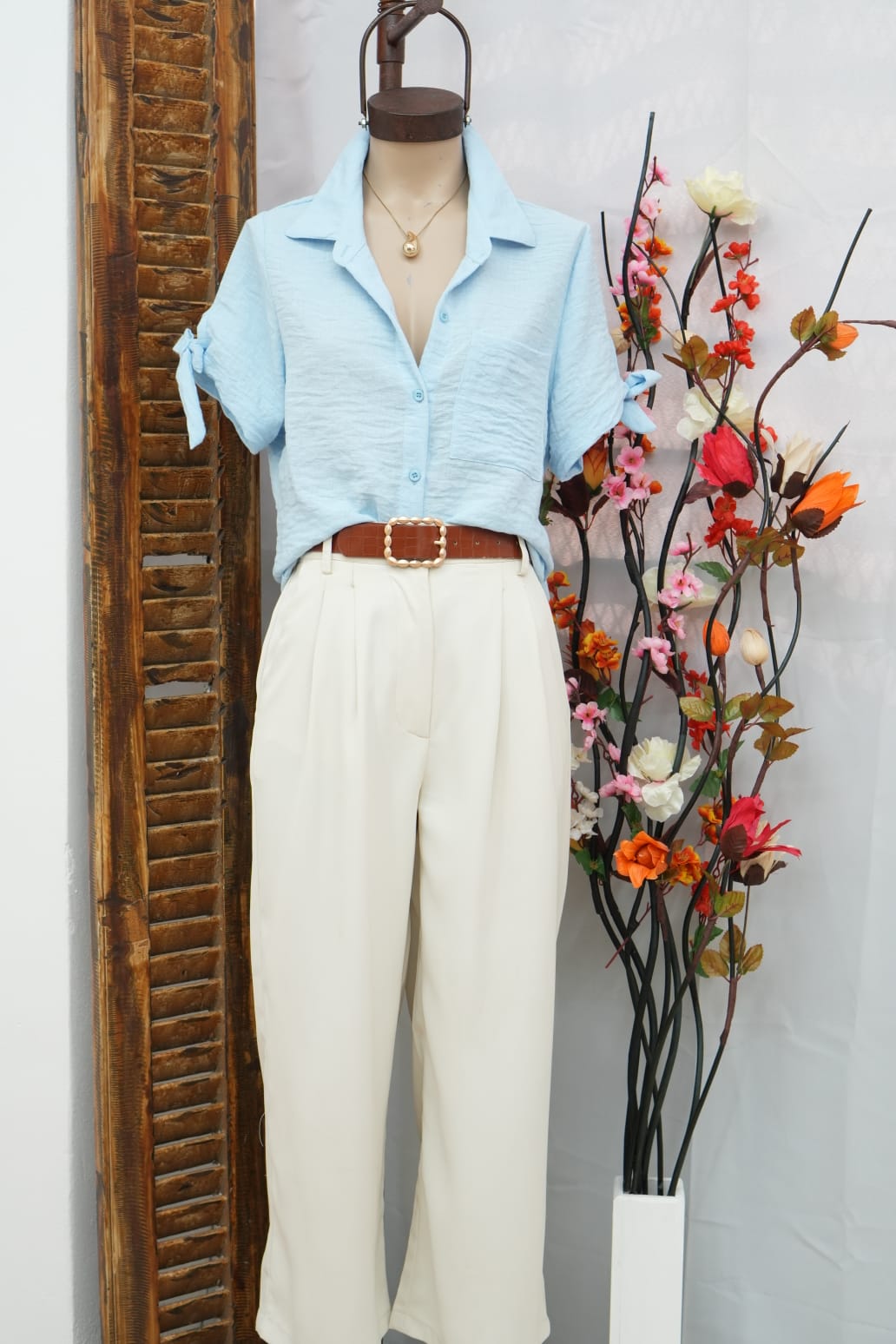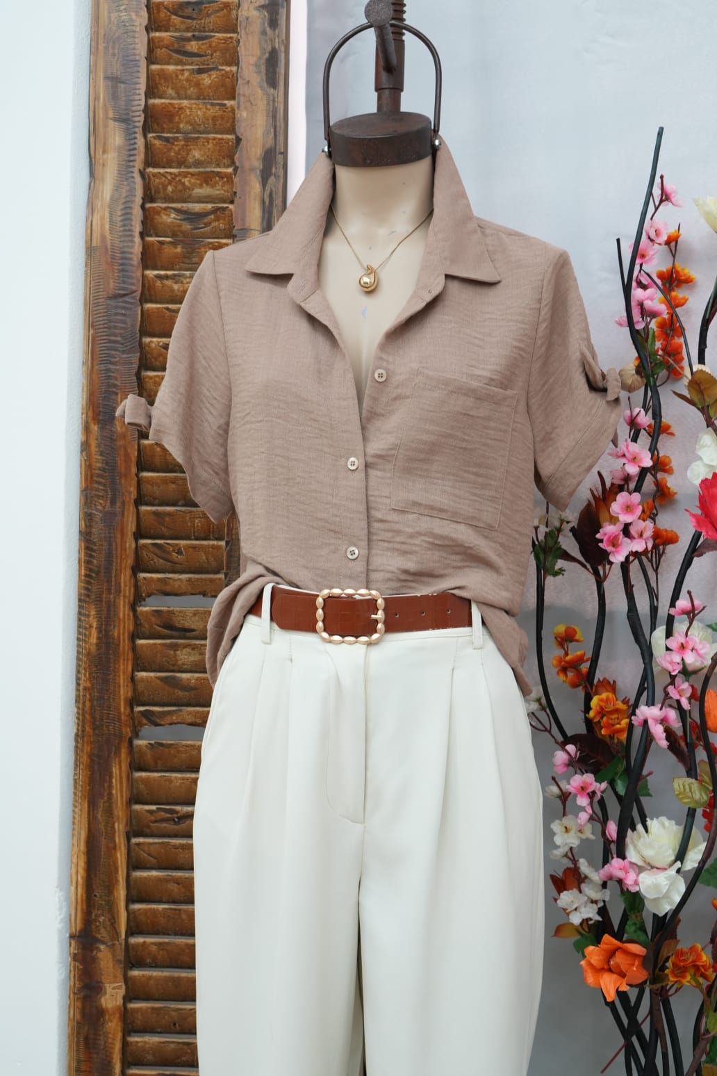 Camisa manga corta lazo de lino margarita