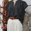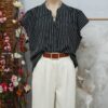 camisola fibrana poplin rayada Cuello Mao