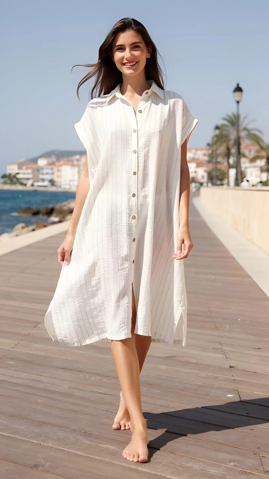 Maxi camisa larga de tela Lino manga caída rallado Mayra