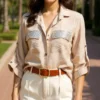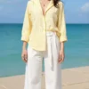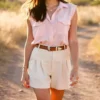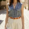 Musculosa camisera dos bolsillos tapita de lino rayado Anyi
