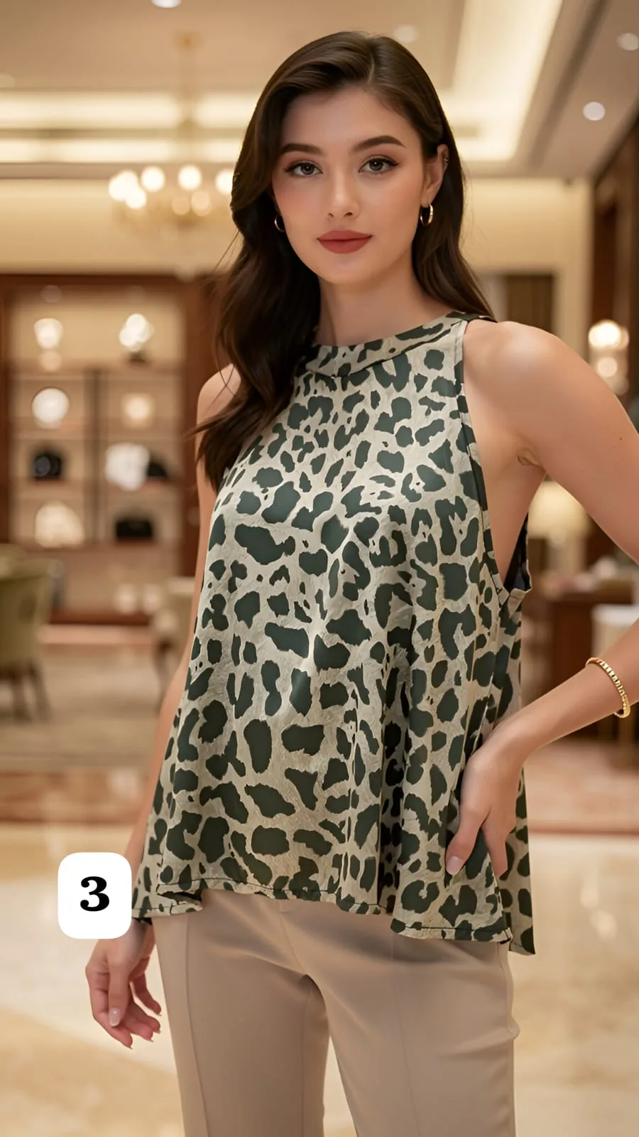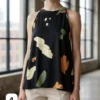 musculosa de saten estampada cuello americano