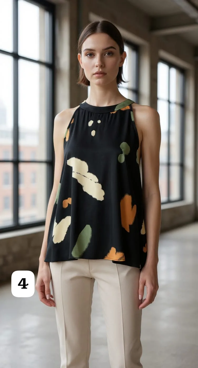 Musculosa de saten estampada cuello americano Everly