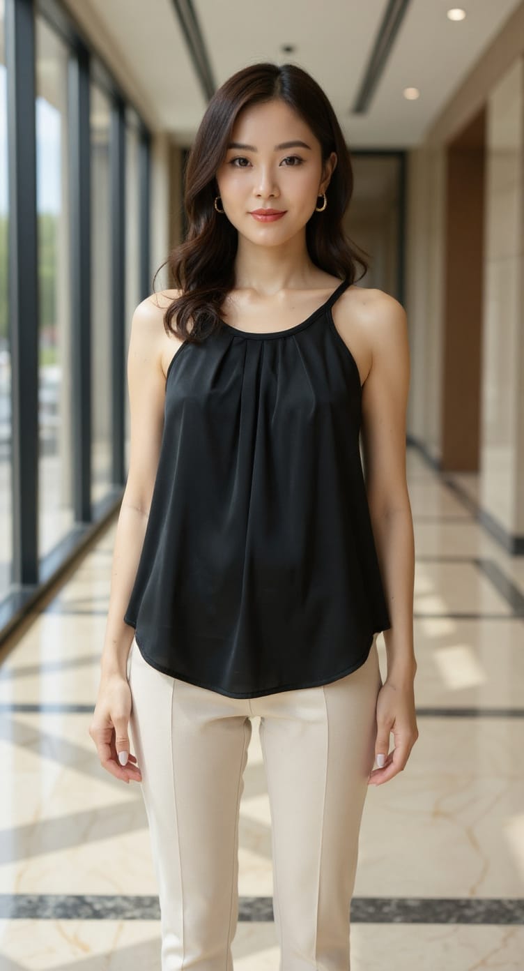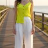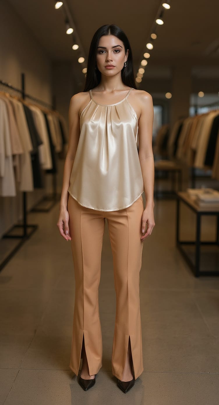 musculosa de saten liso con boton
