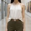 Musculosa de saten liso con boton maire