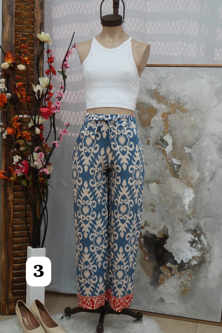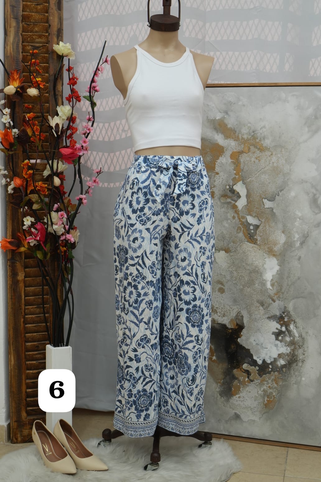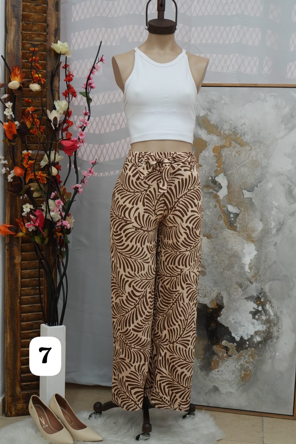 Palazo de lino estampado con pasa cinto y lazo julieta