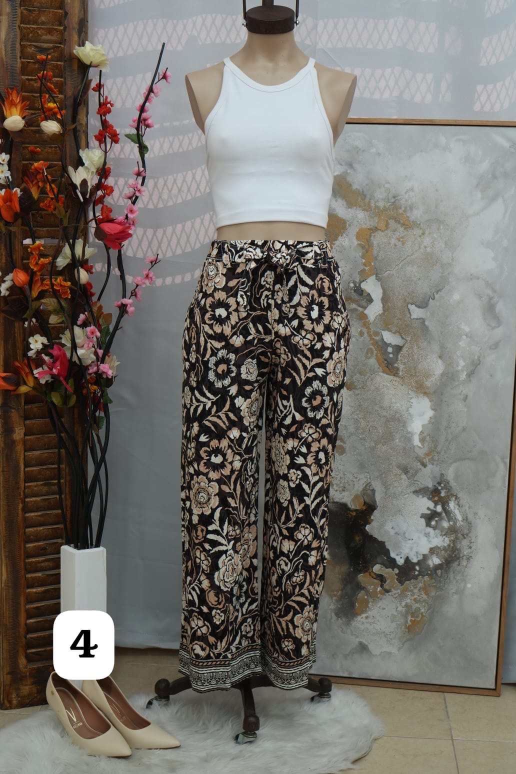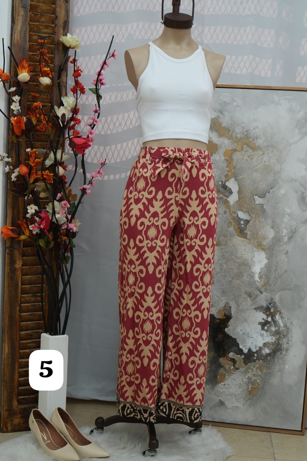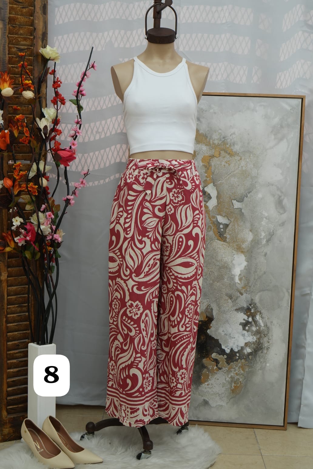 Palazo de lino estampado con pasa cinto y lazo julieta