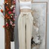 Pantalon de cey con lazo ,pinzas y elastico atras love