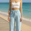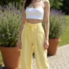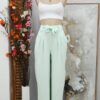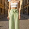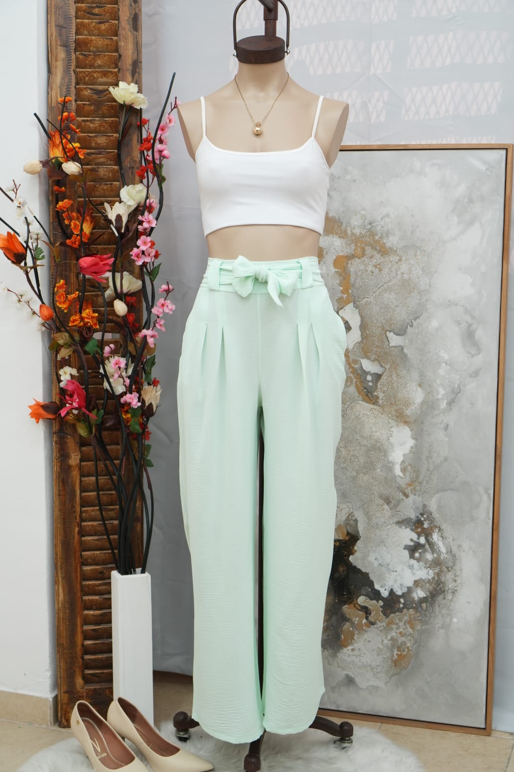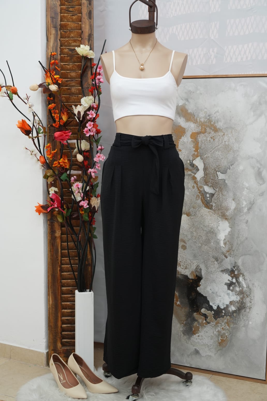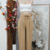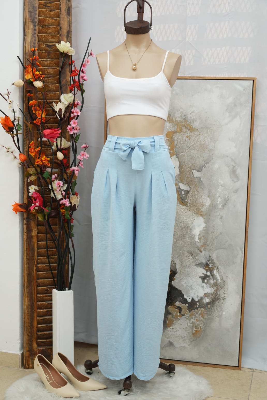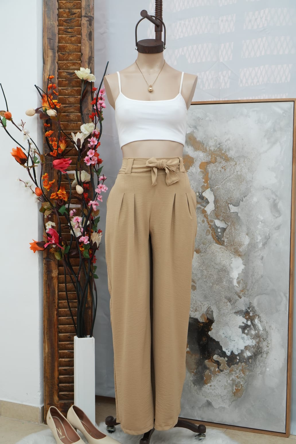 pantalon de cey con lazo ,pinzas y elastico atras love