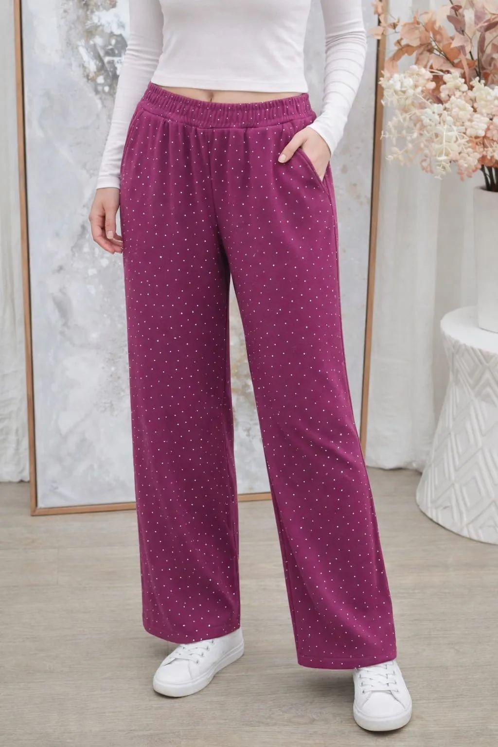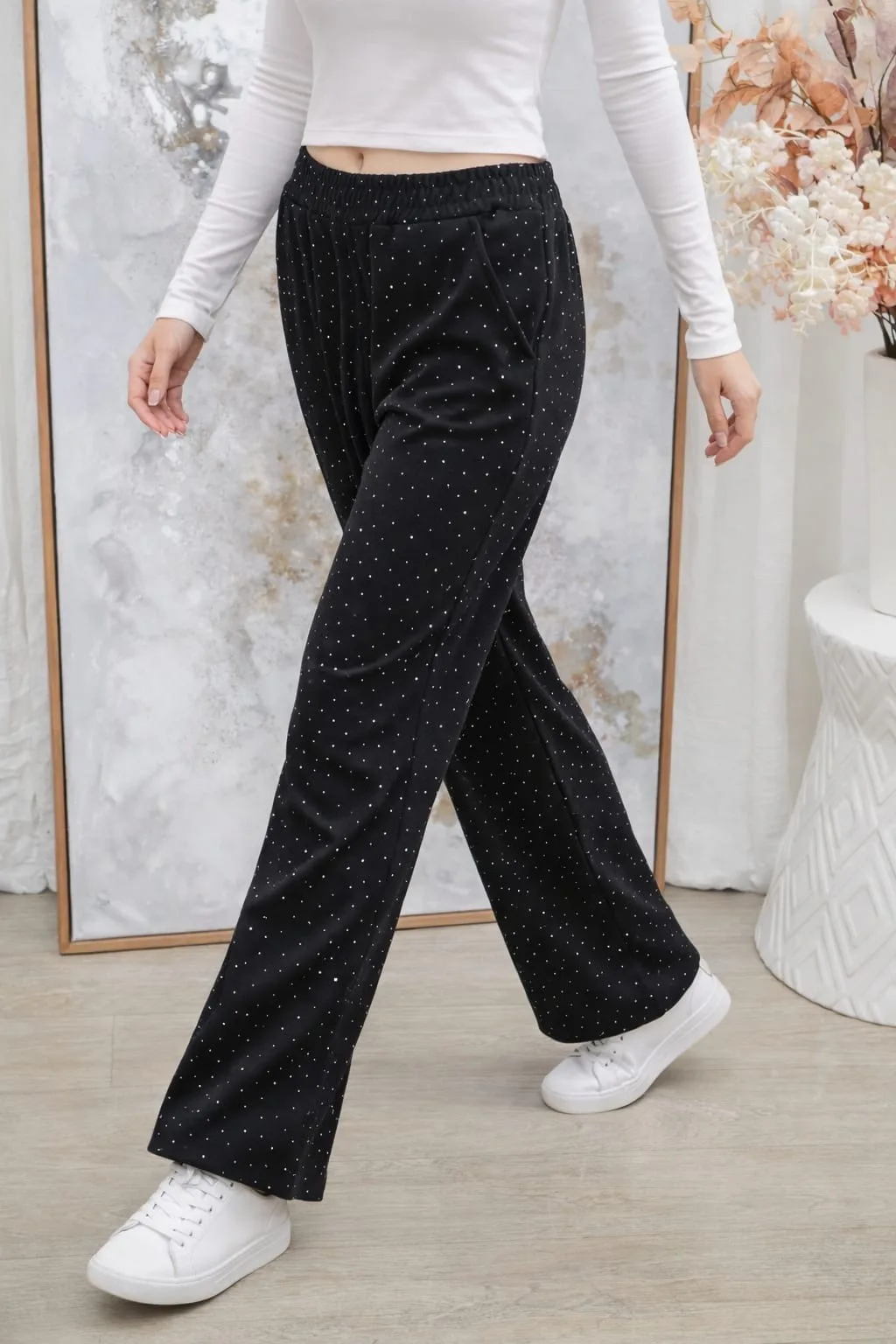 Pantalón de Darlon liso con Strass Diva