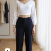 pantalón sastrero de tela crep con botón dos pinzas