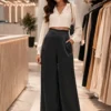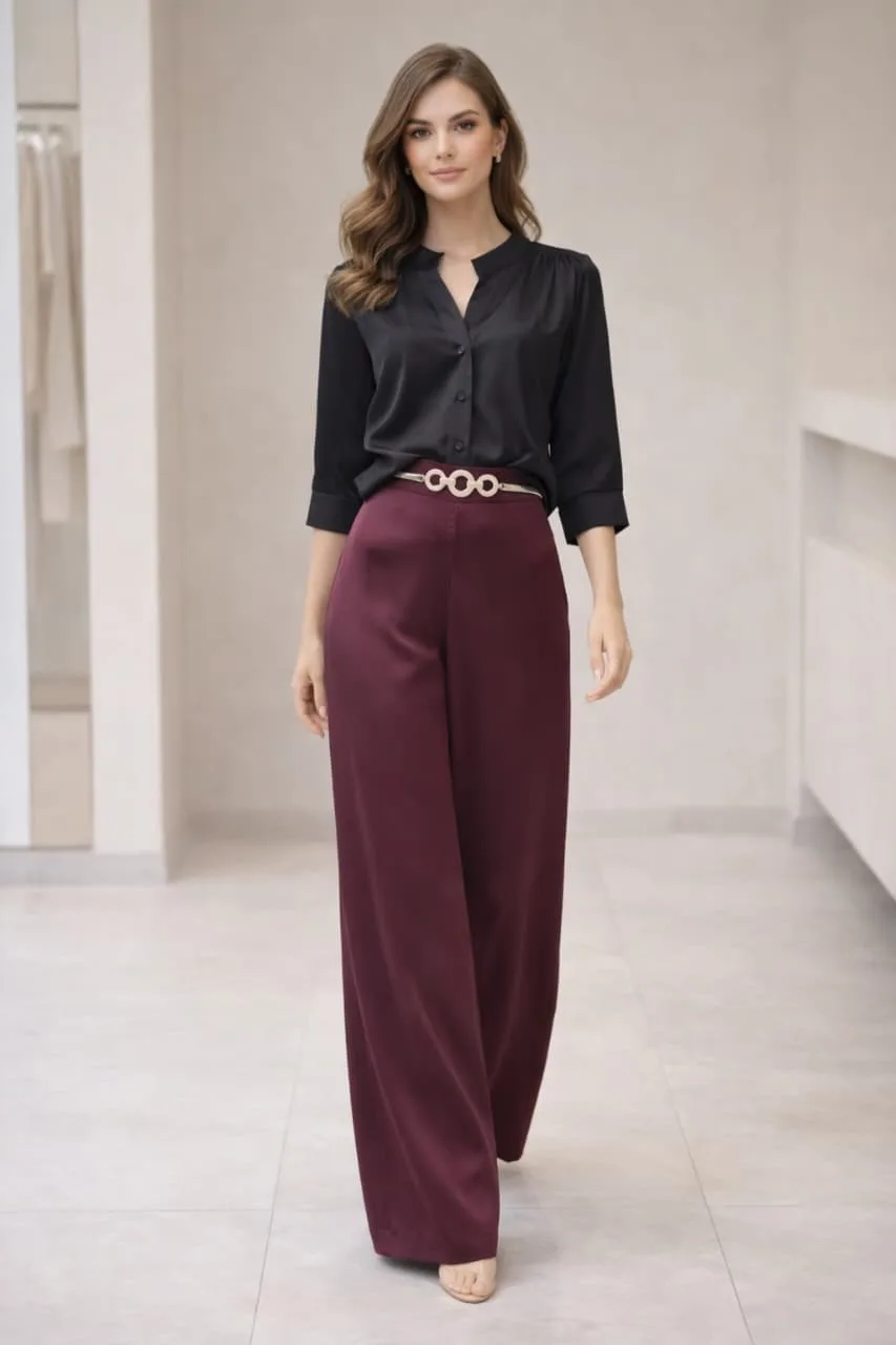 pantalon saten con elastico atras y bolsil