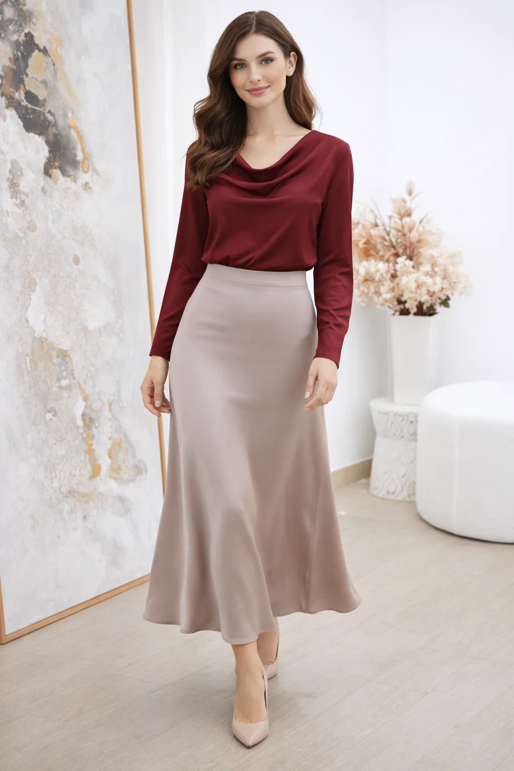 Pollera de Satén elástico en la cintura