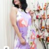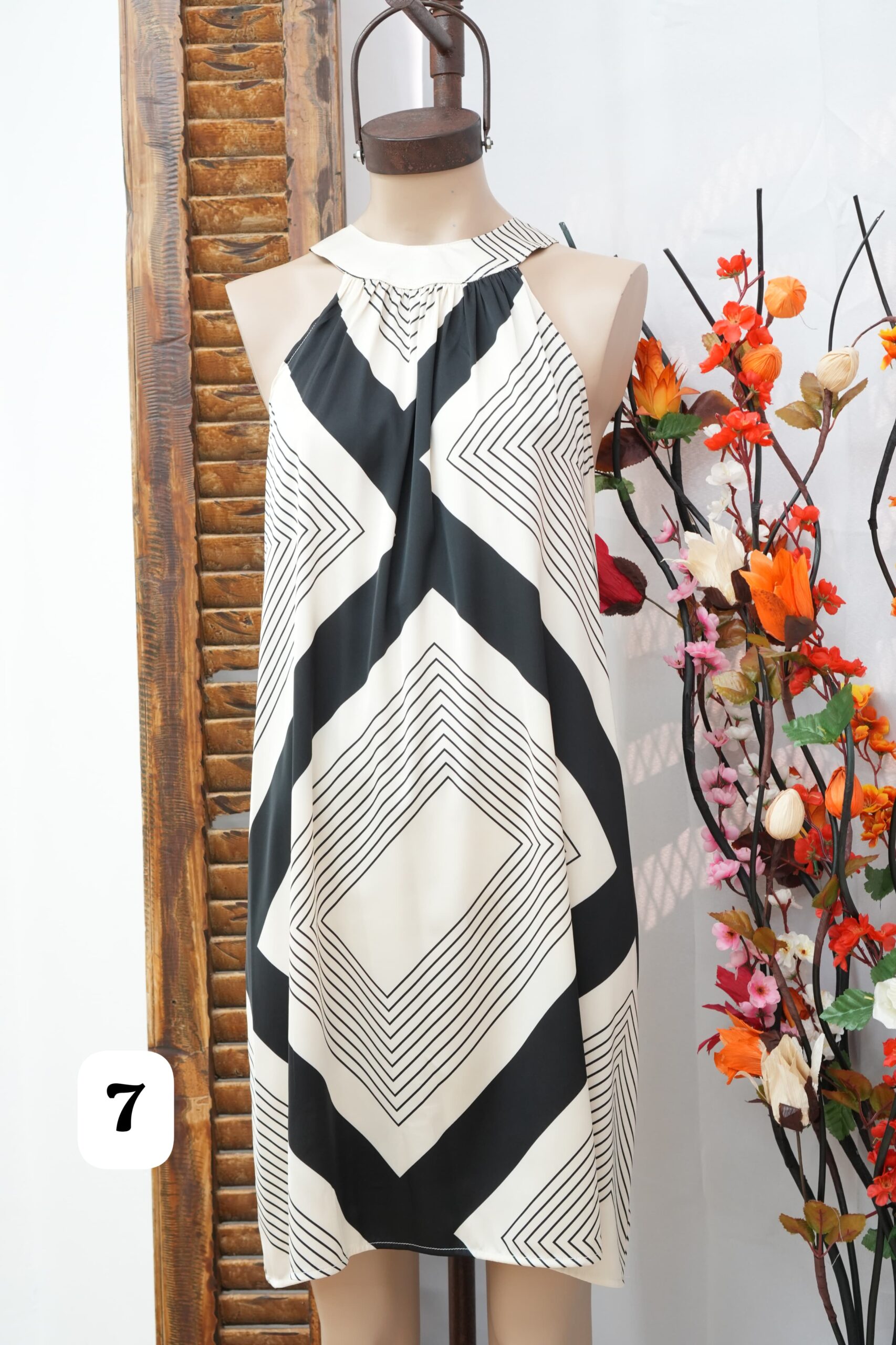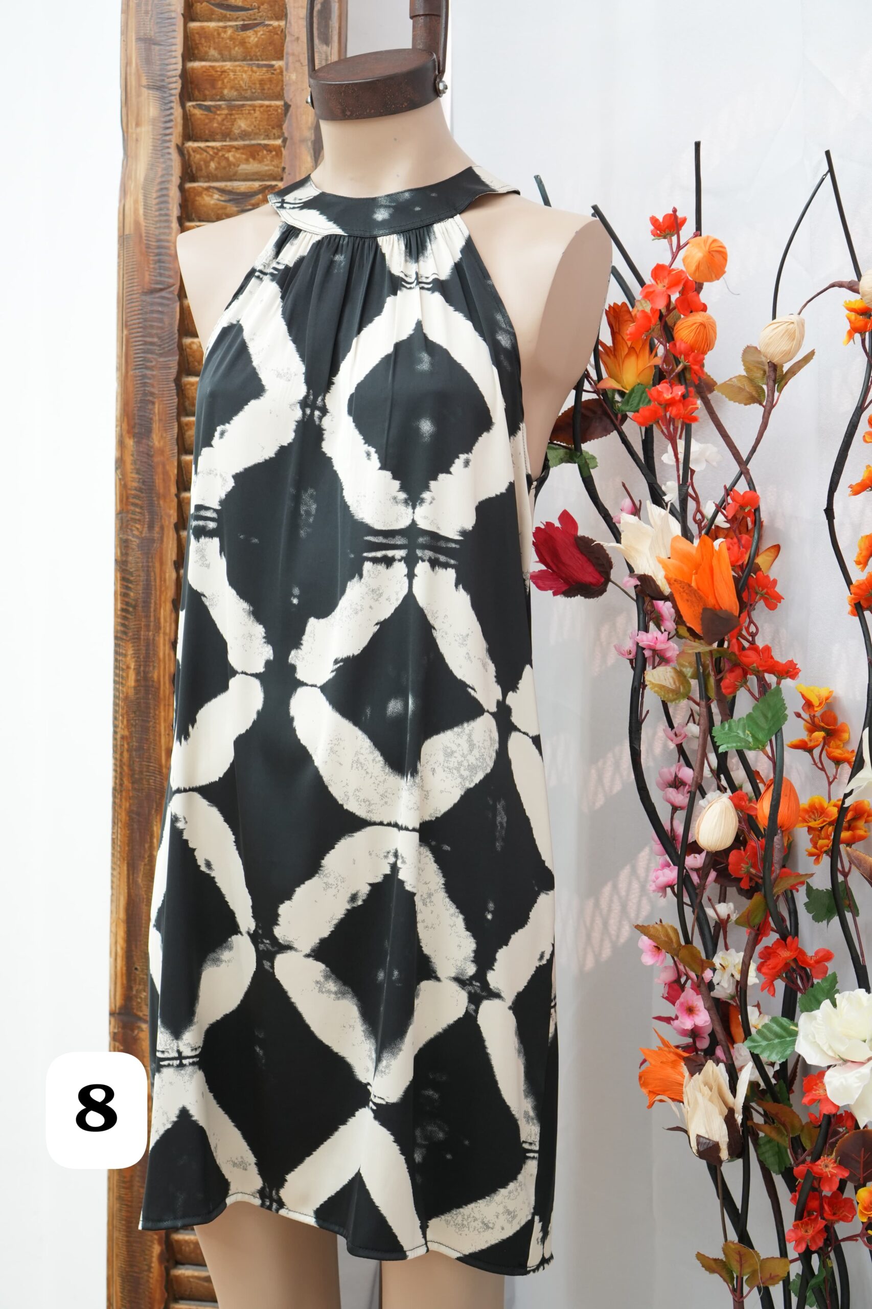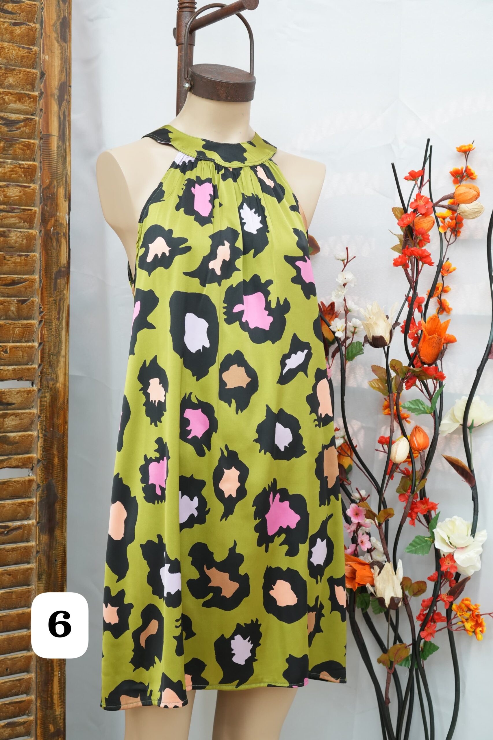 vestido cuello americano de saten estampado